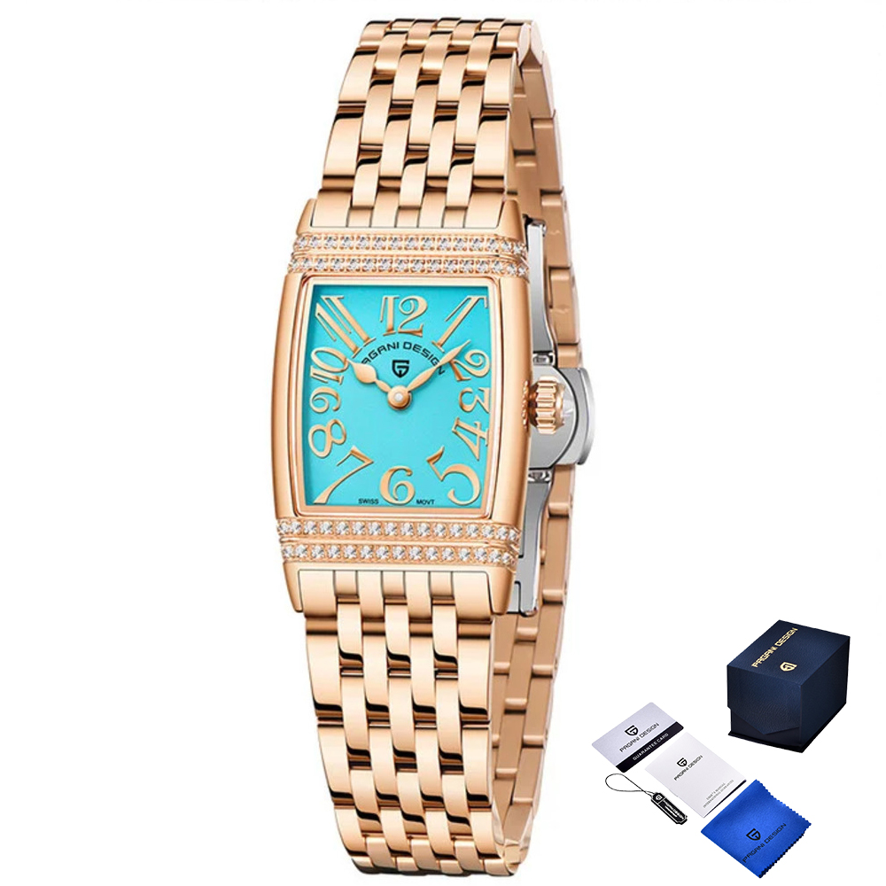 Pagani Design, механізм Кварцовий, корпус 22 х 16, матеріали Нержавіюча сталь, колір Золотистий, форма Прямокутна, стиль Сasual, Класичний, індикація Стрілочний, тип кріплення Браслет, водозахист 50 м, скло Сапфірове