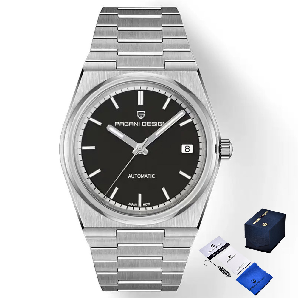 Pagani Design, механізм Механічний з автопідзаводом, корпус 38 х 38, матеріали Нержавіюча сталь, колір Сріблястий, форма Кругла, стиль Сasual, Класичний, індикація Стрілочний, тип кріплення Браслет, водозахист 100 м, скло Сапфірове