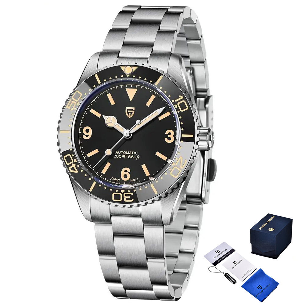 Pagani Design, механізм Механічний з автопідзаводом, корпус 40 х 40, матеріали Нержавіюча сталь, колір Сріблястий, форма Кругла, стиль Сasual, Класичний, індикація Стрілочний, тип кріплення Браслет, водозахист 200 м, скло Сапфірове