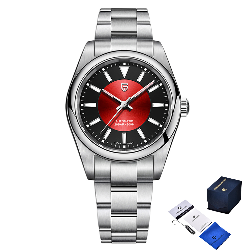 Годинник Pagani Design PD-1764 Silver-Red — це стильний чоловічий аксесуар, який поєднує у собі функціональність і елегантність. Корпус виготовлений з високоякісної нержавіючої сталі, що надає йому міцності та довговічності. Водонепроникність до 200 метрів робить його ідеальним вибором для активного способу життя. Сапфірове скло забезпечує надійний захист циферблату, а механічний механізм з автопідзаводом гарантує точність у часі. Модель має класичний круглий корпус розміром 40 х 40 мм, виконаний у сріблястому кольорі, з відповідним сріблястим браслетом. Люмінесцентна підсвітка дозволяє легко читати час навіть у темряві. Годинник має стрілочний тип циферблату з індексами і індикацією годин, хвилин та секунд. З гарантованою якістю та привабливим дизайном, цей годинник стане ідеальним доповненням до будь-якого образу.
