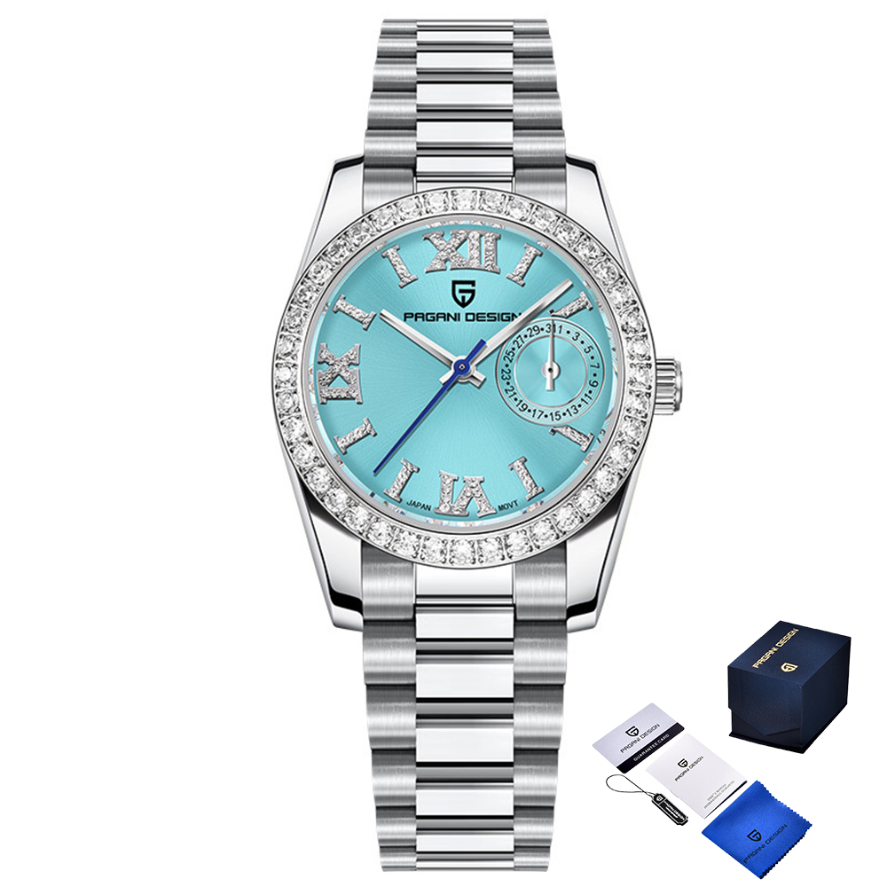 Годинник Pagani Design PD-1776 Silver-Blue - елегантний аксесуар, що підходить для будь-якої жінки. Корпус та ремінець виготовлені з нержавіючої сталі, що забезпечує довговічність та стильний вигляд. Водонепроникність 100 м дозволяє використовувати годинник під час водних процедур. Сапфірове скло захищає від подряпин, а кварцовий механізм гарантує точність. Циферблат має індикацію годин, хвилин, секунд та дати, а також виконаний у класичному стилі з римськими цифрами. Гарантія на годинник становить 12 місяців. Розміри годинника: 32 х 32 мм, вага - 91 г.
