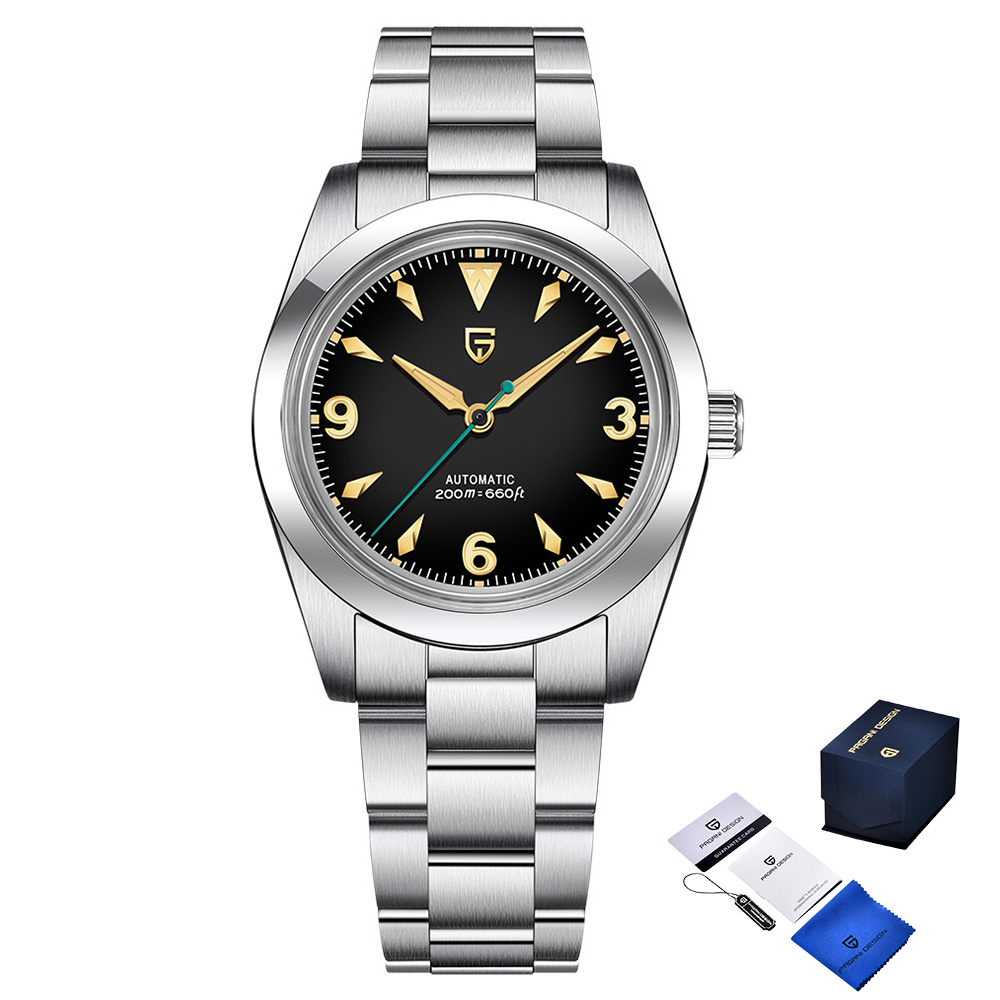 Pagani Design, механізм Механічний з автопідзаводом, корпус 37 х 37, матеріали Нержавіюча сталь, колір Сріблястий, форма Кругла, стиль Сasual, Класичний, індикація Стрілочний, тип кріплення Браслет, водозахист 200 м, скло Сапфірове