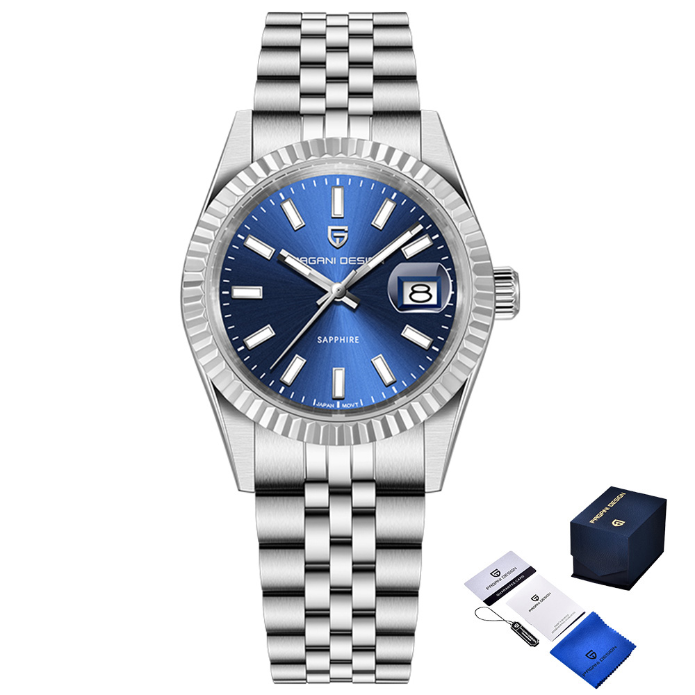 Годинник Pagani Design PD-1794M Silver-Blue Справжній витвір мистецтва для чоловіків - годинник Pagani Design PD-1794M поєднує в собі елегантність та функціональність. Діаметр корпусу 39 мм з виготовлений із високоякісної сталі та ідеально доповнений сапфіровим склом, яке робить його максимально стійким до подряпин. Водонепроникність до 50 метрів дозволяє носити його під час зайнянь спортом, а механічний механізм з автопідзаводом забезпечує точність і надійність. Сріблястий колір корпуса і ремінця додає годиннику вишуканого вигляду, а класичний стрілочний циферблат з індикацією годин, хвилин і секунд робить його ідеальним для будь-якого стилю – від casual до класичного. Загальна вага годинника складає 85 г, а довжина ремінця – 24 мм. Бренд Pagani Design зарекомендував себе на ринку, і цей годинник є підтвердженням його високої якості та елегантності. Гарантія на виріб – 12 місяців. Створіть свій стиль разом з Pagani Design!