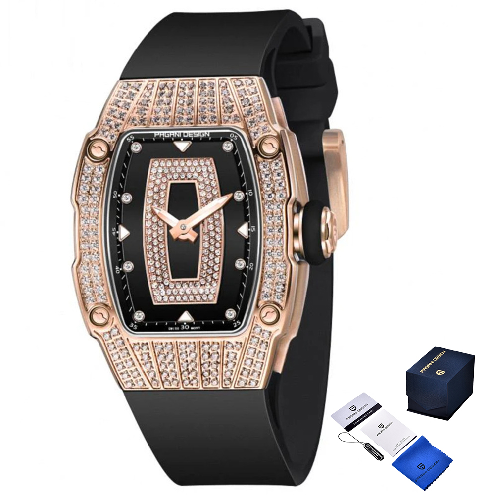 Pagani Design, механізм Кварцовий, корпус 31, 5 х 20, матеріали Нержавіюча сталь / Силікон, колір Золотистий / Чорний, форма Прямокутна, стиль Класичний, індикація Стрілочний, тип кріплення Ремінець, водозахист 50 м, скло Сапфірове