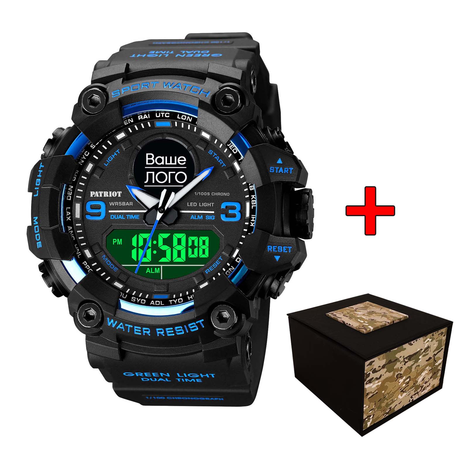Patriot, механізм Кварцовий, корпус 54 х 58, матеріали Полімер / Каучук, колір Чорний, форма Кругла, стиль Спортивний, Армійський, індикація Стрілочно-електронний, тип кріплення Ремінець, водозахист 50 м, скло Полімерне