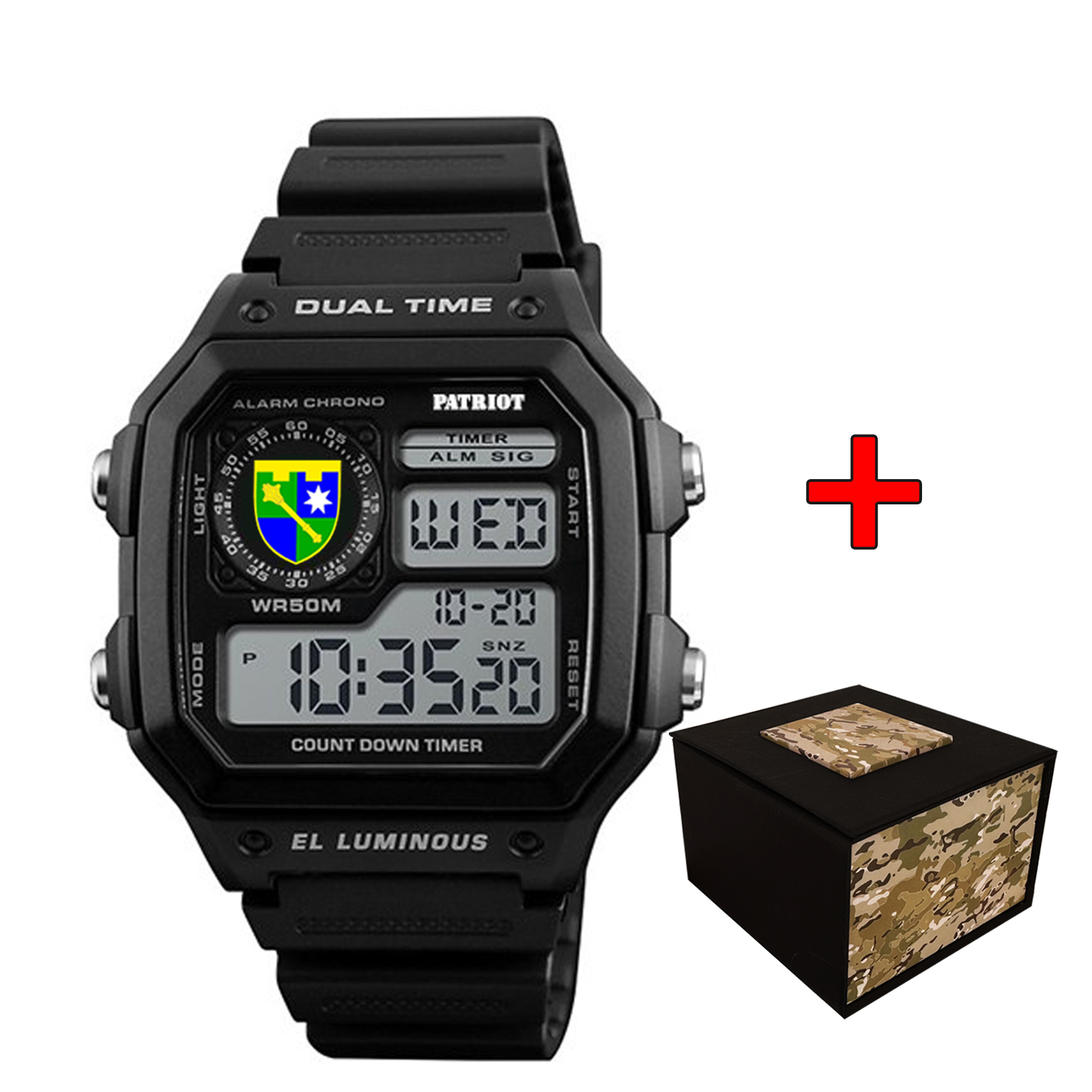 Patriot, механізм Електронний, корпус 43 х 43, матеріали Полімер / Поліуретан, колір Чорний, форма Прямокутна, стиль Спортивний, індикація Електронний, тип кріплення Ремінець, водозахист 50 м, скло Полімерне