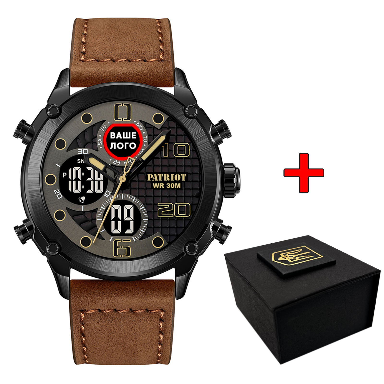 Patriot, механізм Кварцовий, корпус 52,9 х 45,9, матеріали Метал / Шкіра, колір Чорний / Коричневий, форма Кругла, стиль Сasual, Класичний, індикація Стрілочно-електронний, тип кріплення Ремінець, водозахист 30 м, скло Полімерне