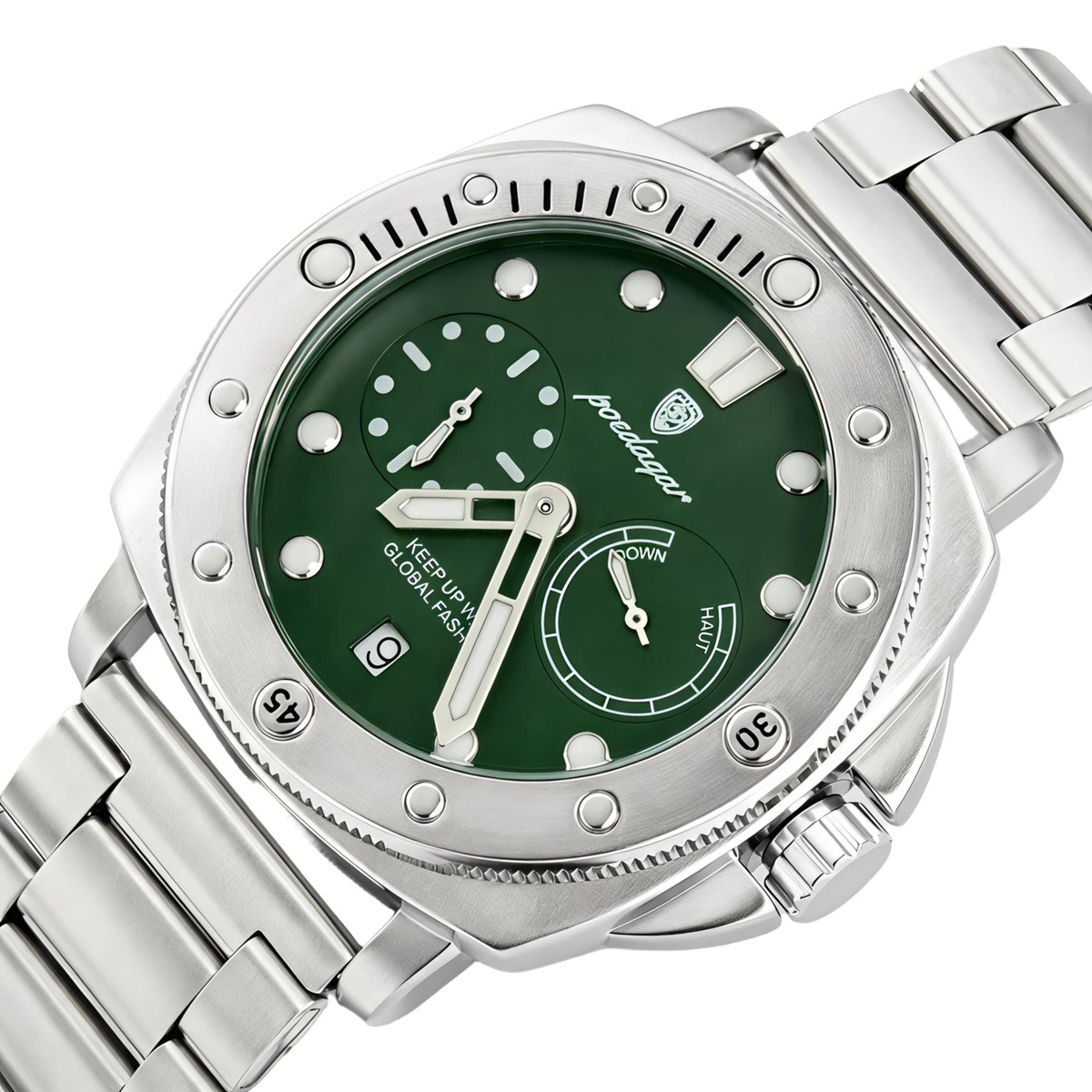 Poedagar - це поєднання елегантності, точності та сучасного стилю. Годинники цього бренду створені для тих, хто цінує витонченість у деталях та прагне підкреслити свою індивідуальність.Кожна модель Poedagar - це:Якісні матеріали: нержавіюча сталь, міцне мінеральне скло, надійні кварцові механізми.Стильний дизайн: від класичних рішень до сучасних спортивних форм.Функціональність: водозахист, індикатор дати, світловідбивні стрілки та інші корисні функції.Poedagar - це ідеальний вибір для ділових зустрічей, повсякденного стилю або особливих подій. Це не просто годинник - це вираз вашого смаку, впевненості та стилю.В комплекті йде офіційна гарантія на 12 місяців.Годинник комплектується 2 ремінцями: Основний - нейлоновий зелений;Додатковий - сріблястий металевий браслет.