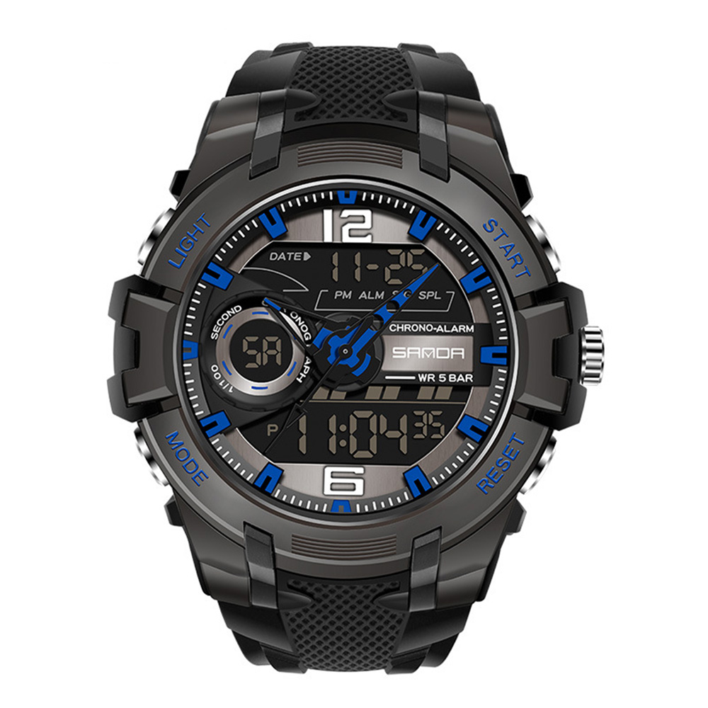 Годинник Sanda 6015 Black-Blue Представляємо вам спортивний чоловічий годинник Sanda 6015 Black-Blue – ідеальний аксесуар для активних та стильних чоловіків. Цей годинник поєднує в собі сучасний дизайн та практичність. Корпус виготовлений зі сталі та має діаметр 50 мм, що надає йому надійності та витривалості. Водонепроникність до 50 метрів дозволяє сміливо використовувати годинник під час водних видів спорту або в дощову погоду. Ремінець із каучуку забезпечує комфорт під час носіння, а електролюмінесцентна підсвітка дозволяє з легкістю читати показання в темряві. Годинник обладнаний електронним механізмом та комбінованим циферблатом, на якому ви знайдете індикацію годин, хвилин та секунд. Функції будильника, календаря, світового часу та секундоміра роблять Sanda 6015 ще більш корисним у повсякденному житті. Гарантія на годинник становить 12 місяців, що підкреслює його якість та надійність. Оберіть Sanda 6015 Black-Blue – і ви отримаєте створення, яке підходить для будь-якої ситуації та підкреслить ваш стиль!