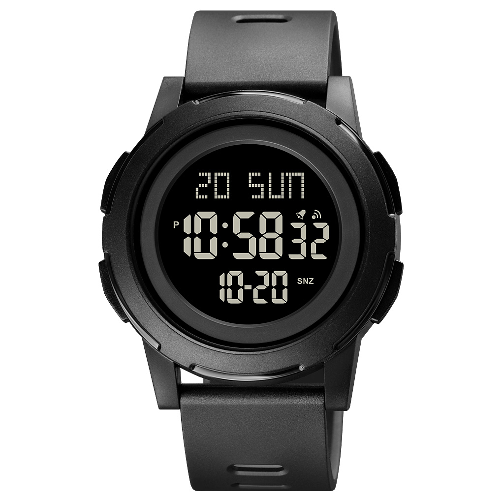 Skmei, механізм Електронний, корпус 40 х 40, матеріали Полімер / Каучук, колір Чорний, форма Кругла, стиль Спортивний, індикація Електронний, тип кріплення Ремінець, водозахист 50 м, скло Акрилове