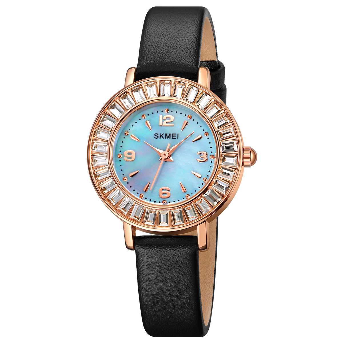Skmei, механізм Кварцовий, корпус 36 х 30, матеріали Метал / Шкіра, колір Золотистий / Чорний, форма Кругла, стиль Класичний, індикація Стрілочний, тип кріплення Ремінець, водозахист 30 м, скло Мінеральне