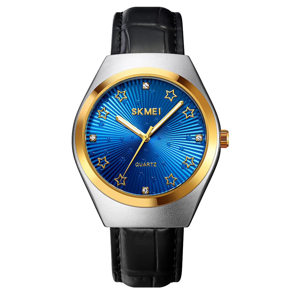 Skmei, механізм Кварцовий, корпус 35 х 35, матеріали Сталь / Шкіра, колір Сріблястий / Блакитний, форма Кругла, стиль Класичний, індикація Стрілочний, тип кріплення Ремінець, водозахист 30 м, скло Мінеральне