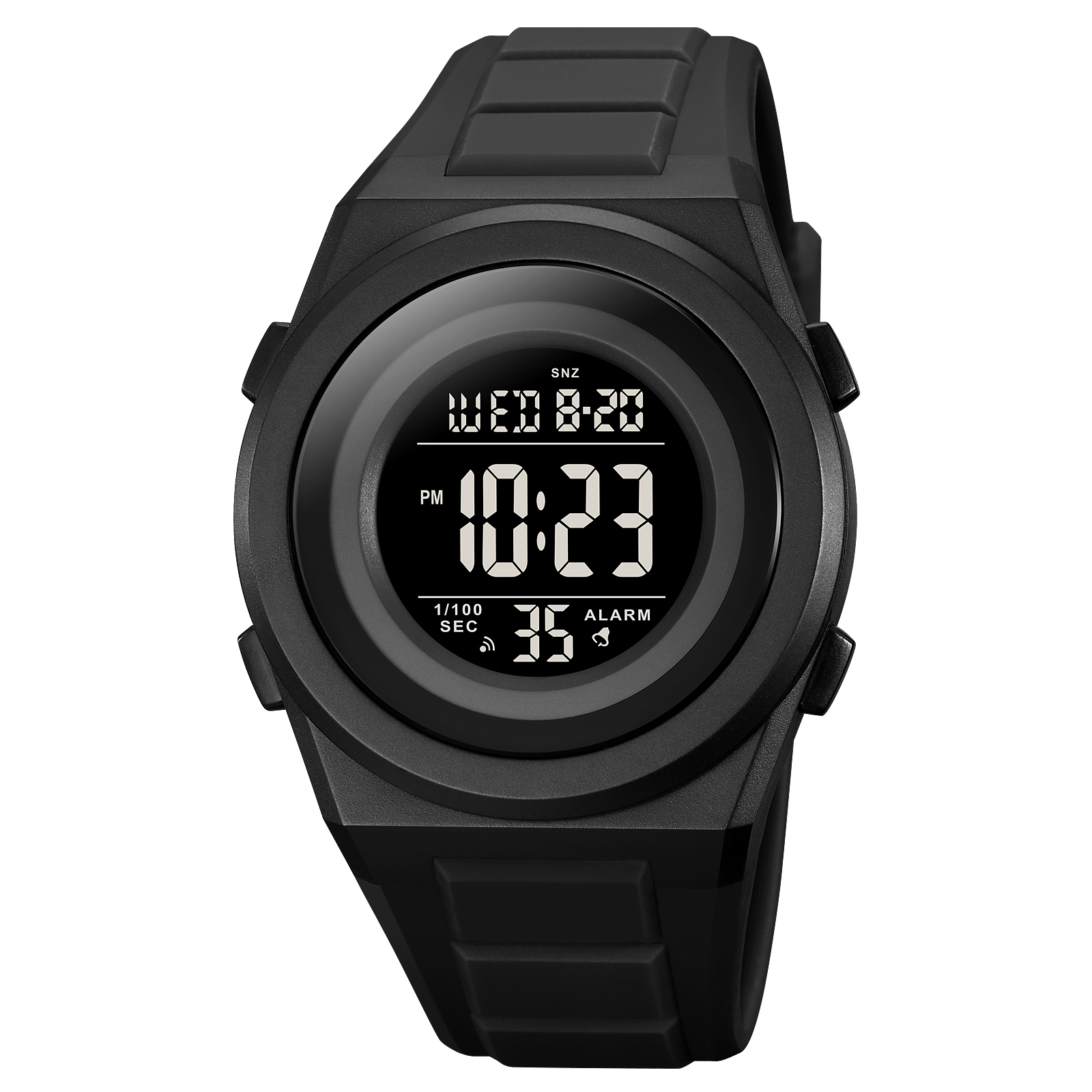 Skmei, механізм Електронний, корпус 45 х 45, матеріали Полімер / Каучук, колір Чорний, форма Кругла, стиль Спортивний, індикація Електронний, тип кріплення Ремінець, водозахист 50 м, скло Полімерне