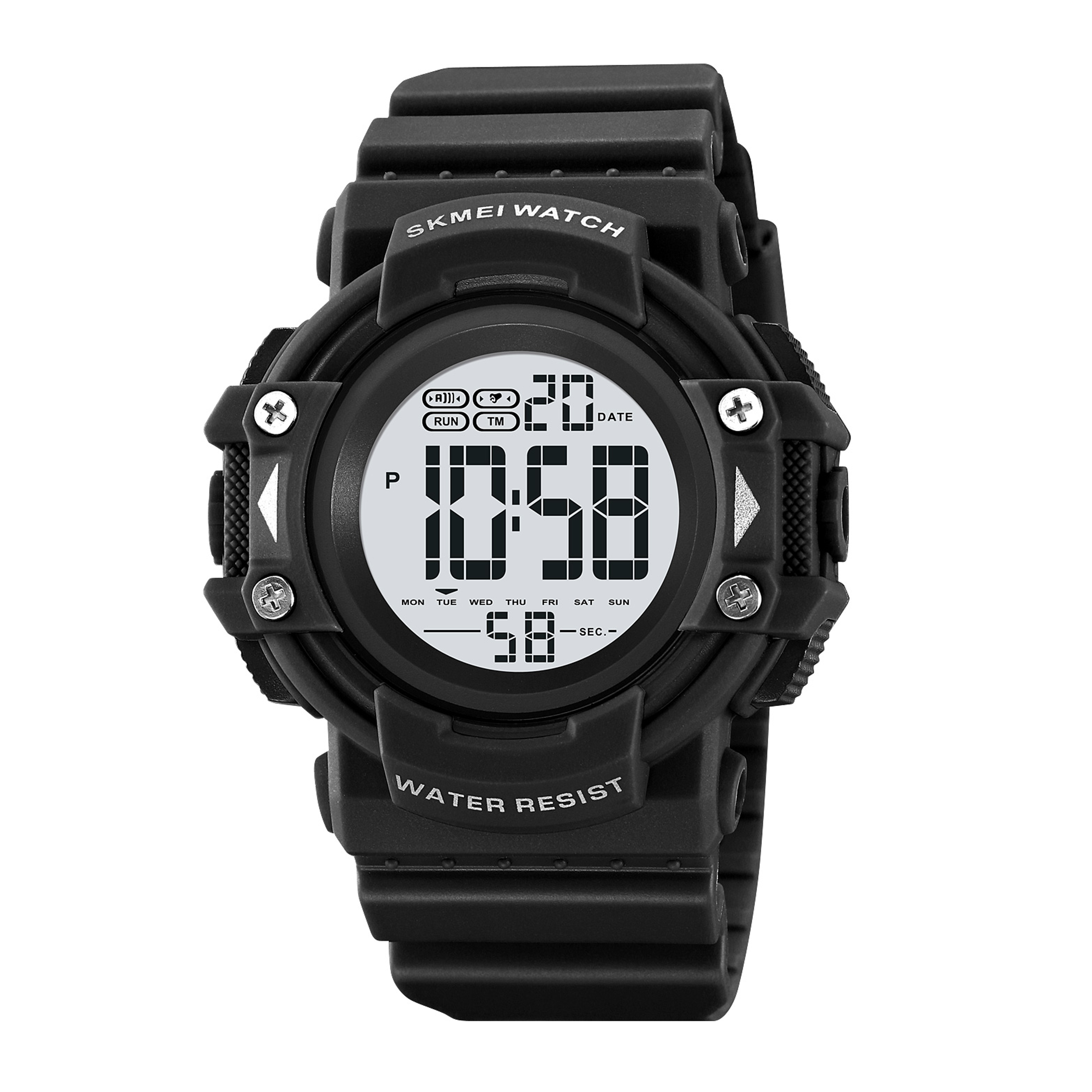 Skmei, механізм Електронний, корпус 53 х 49,7, матеріали Полімер / Каучук, колір Чорний, форма Кругла, стиль Спортивний, Сasual, індикація Електронний, тип кріплення Ремінець, водозахист 50 м, скло Полімерне