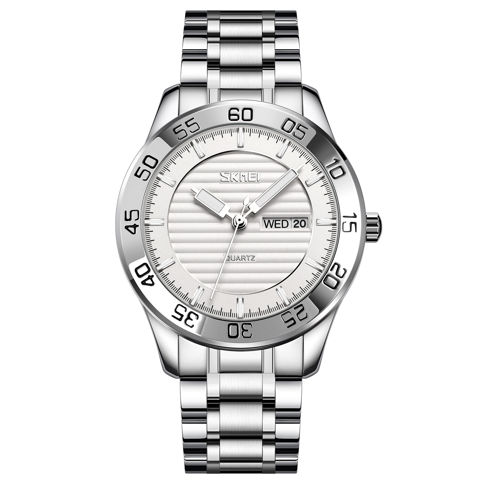 Skmei, механізм Кварцовий, корпус 49 х 41, матеріали Метал / Нержавіюча сталь, колір Сріблястий, форма Кругла, стиль Сasual, Класичний, індикація Стрілочний, тип кріплення Ремінець, водозахист 30 м, скло Полімерне