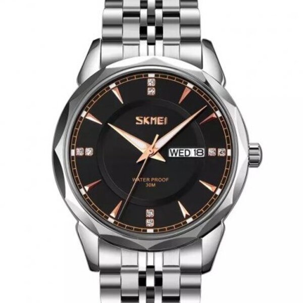 Skmei, механізм Кварцовий, корпус 39х12, матеріали Сталь / Сталевий / Метал, колір Сріблястий, форма Круглий, стиль Класичний, індикація Аналоговий (стрілочний), тип кріплення Браслет, скло Мінеральне