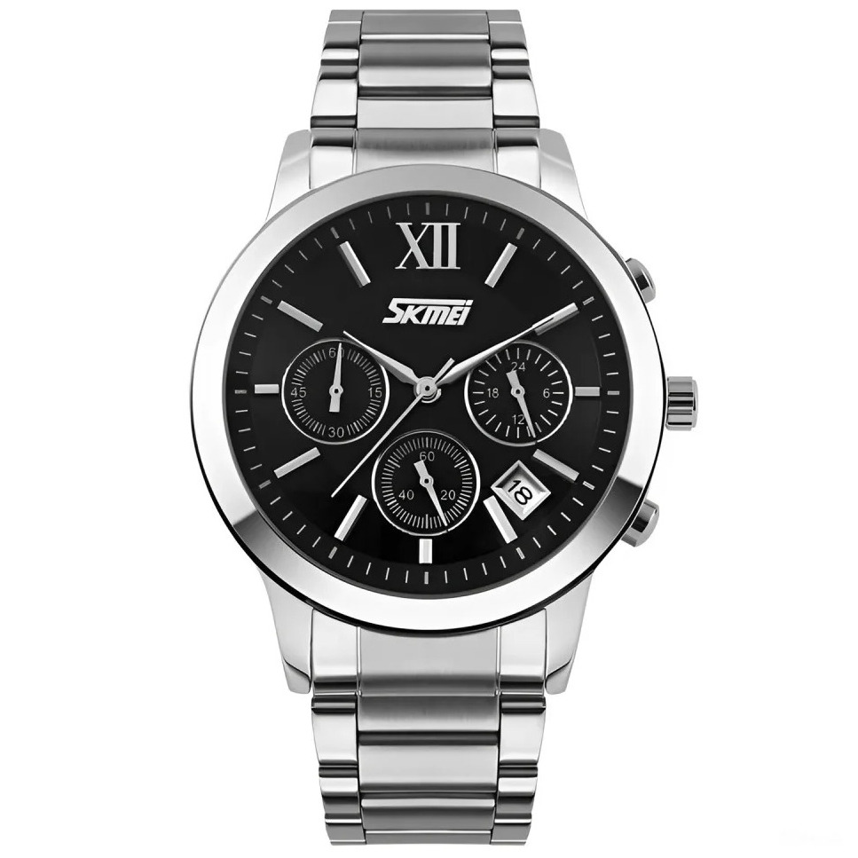 Skmei, механізм Кварцовий, корпус 42х12, матеріали Сталь / Сталевий / Метал, колір Сріблястий, форма Круглий, стиль Класичний, індикація Аналоговий (стрілочний), тип кріплення Браслет, скло Мінеральне