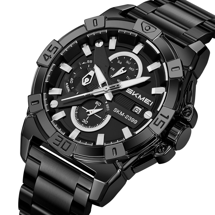 Skmei, механізм Кварцовий, корпус 48х15, матеріали Сталь / Сталевий / Метал, колір Чорний, форма Круглий, стиль Класичний, індикація Аналоговий (стрілочний), тип кріплення Браслет, скло Мінеральне