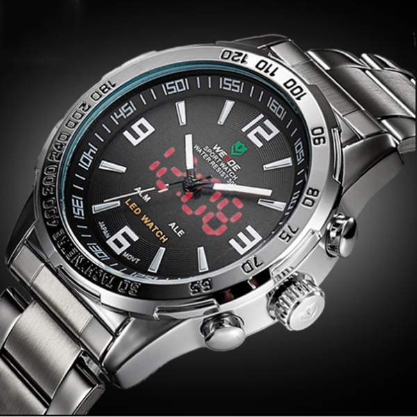 Weide, механізм Кварцовий, корпус 44х15, матеріали Сталь / Сталевий / Метал, колір Сріблястий / Сталевий, форма Круглий, стиль Спортивний, індикація Комбинированный (аналогово-стрелочный), тип кріплення Браслет, скло Мінеральне