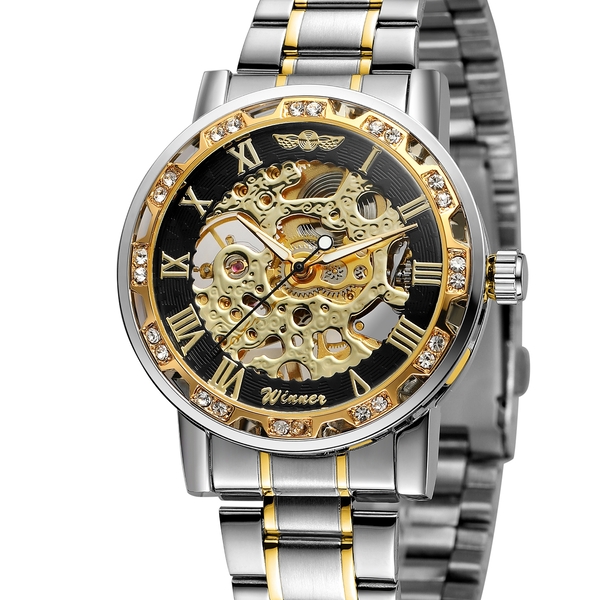 Winner, механізм Механічний, корпус 40х13, матеріали Сталь / Сталевий / Метал, колір Сріблястий / Сріблястий з золотистими вставками, форма Круглий, стиль Класичний, індикація Аналоговий (стрілочний), тип кріплення Браслет, скло Мінеральне